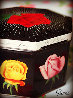 Vaalea tanskalainen IRA-purkki sai kaverikseen mustapohjaisen pienemmän. - Found a black Danish IRA tin to pair with the white one.